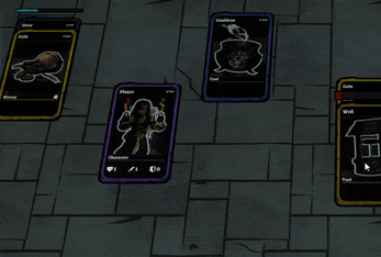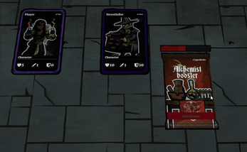 Des cartes "mercenaires" qu'on envoie dans des cartes "porte de donjon" pour aller chercher des ingrédients. A la fin d'un temps x, donnant un booster donjon.